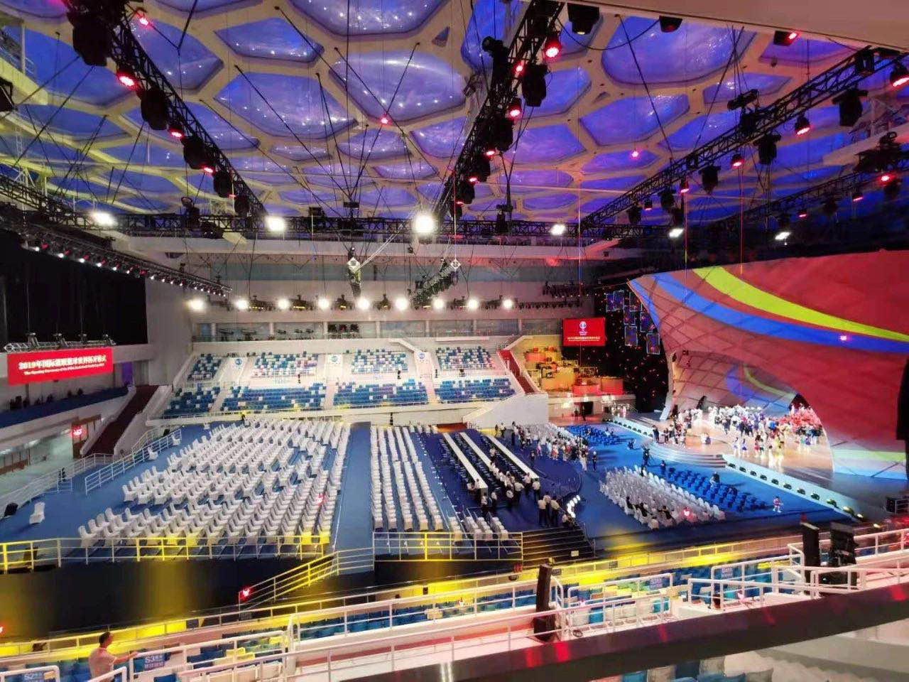 Based on the renovation project of curling venue for the Winter Olympics, the structural change in Competition Hall of Beijing National Aquatics Center lays infrastructure foundation for the successful holding of the FIBA Basketball World Cup 2019: The original rippling swimming pool just converted into what was needed for the ceremonies at the end of July 2019. On this basis, the stage and seating facilities required for the opening ceremony are quickly completed.