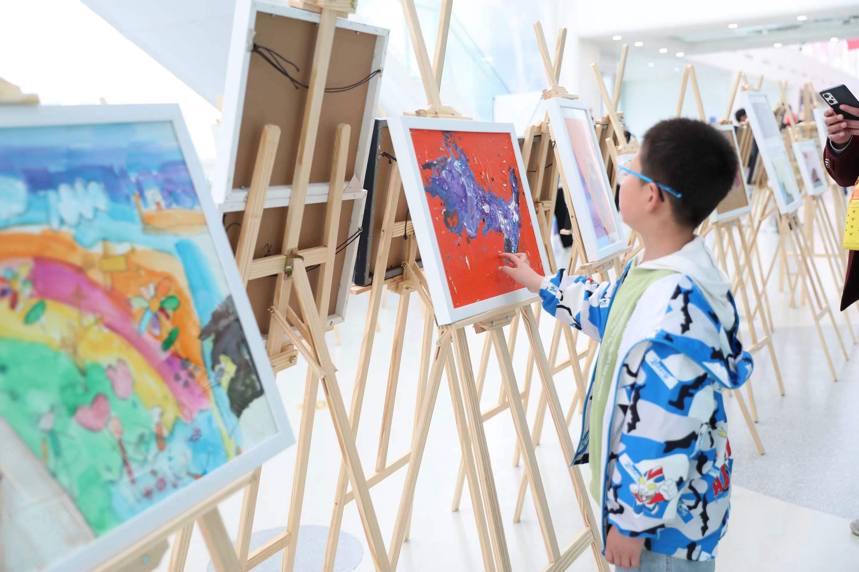 An art exhibition featuring paintings made by autistic children is held at the National Aquatics Center in Beijing, April 2, 2023. [Photo provided to China.org.cn]