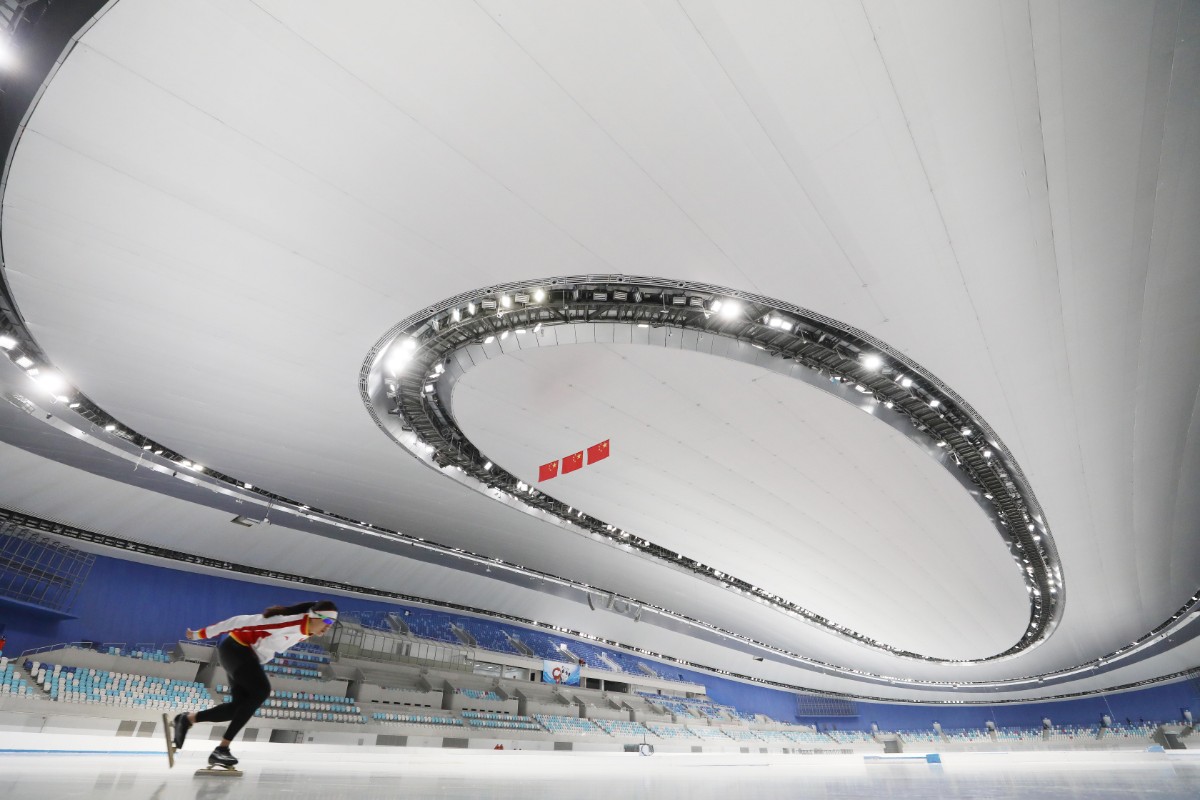 2019年12月国家速滑馆实现封顶封围,“冰丝带”迎来“丝带飞舞”
