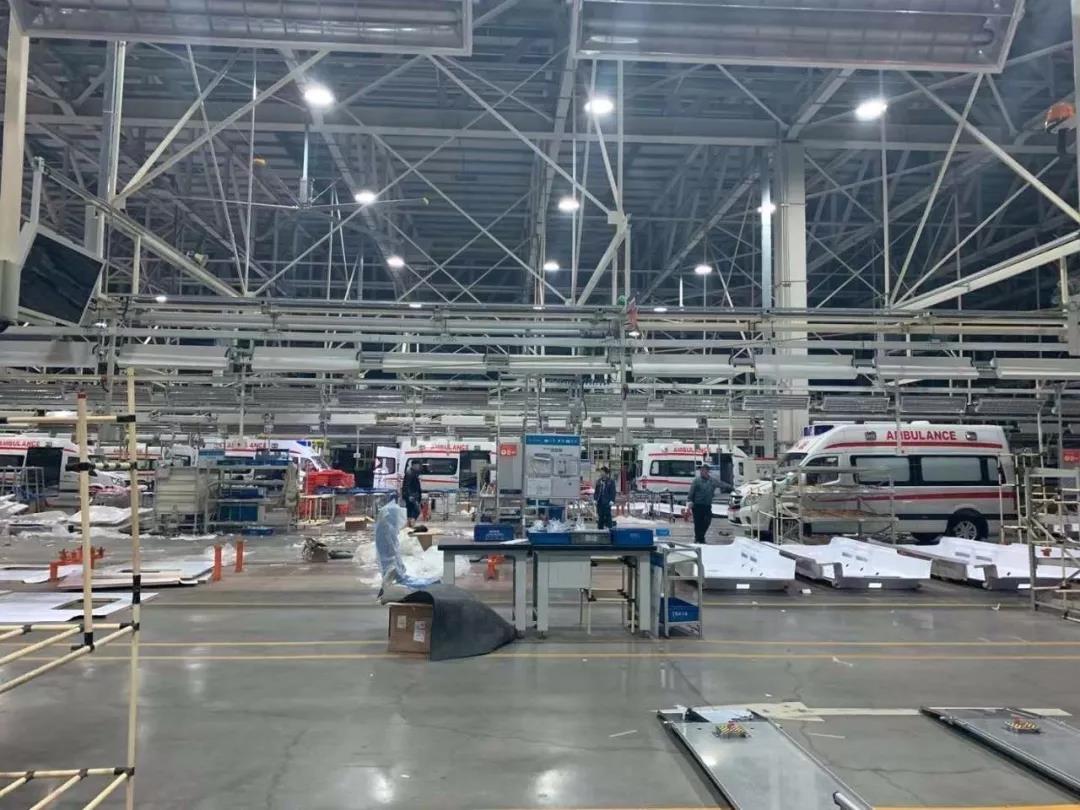 北汽福田数十辆负压救护车驰援武汉,负责大规模的病人运输;
