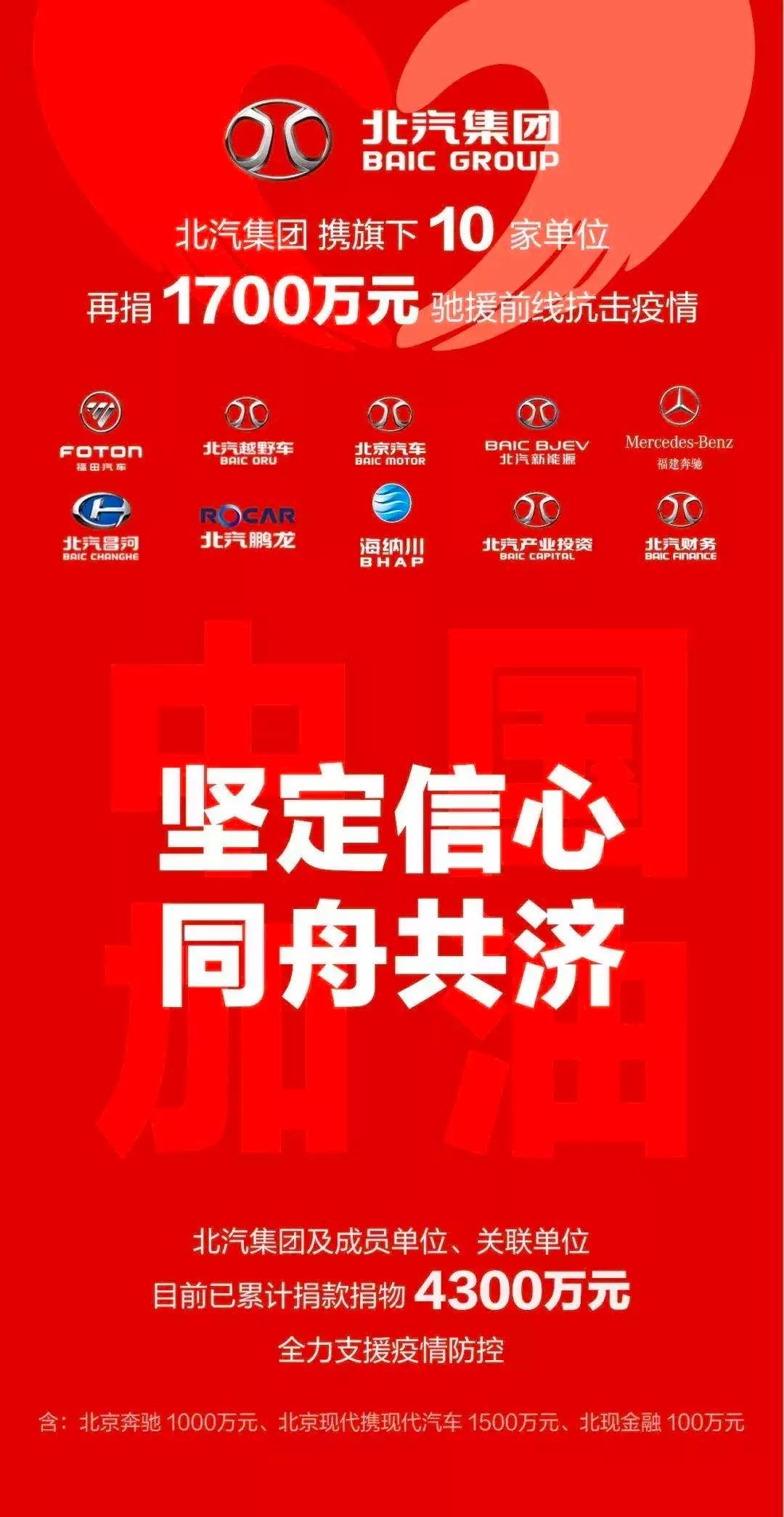 北汽集团捐款捐物4300万元、华夏银行捐款3000万元、京东方捐款1000万元……