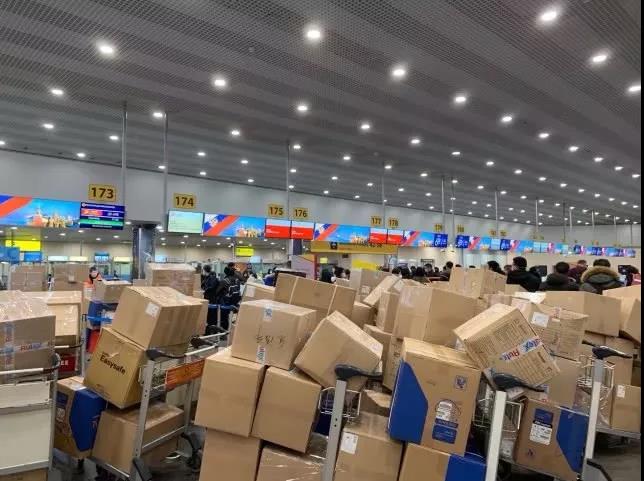 首都航空开通绿色通道,首批俄罗斯华商捐赠的244箱医用口罩、防护服、护目镜等物资运抵杭州。