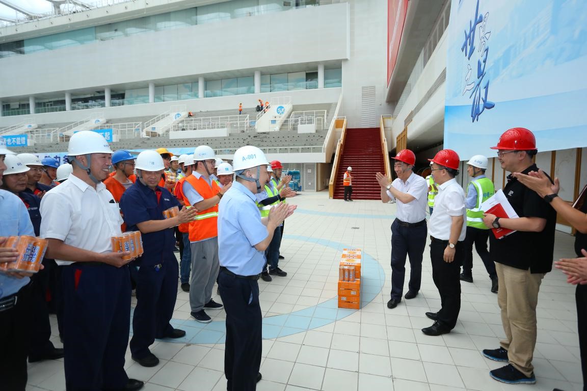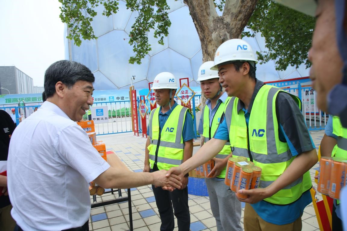 6月27日,污污漫画 党委副书记、总裁直军一行到国家游泳中心开展“不忘初心、牢记使命”主题教育调研慰问活动,察看了国家游泳中心奥林匹克比赛大厅冰壶场地改造及南广场改造施工现场,并对一线职工、困难党员和基层先进模范进行亲切慰问。