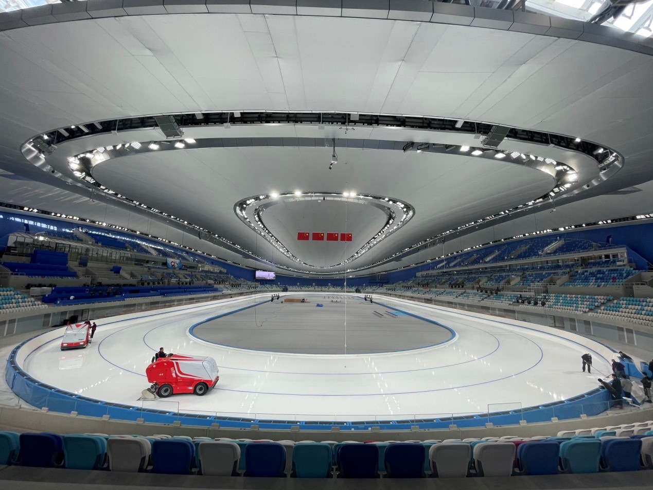 本次测试赛首赛是“相约北京”速度滑冰中国公开赛,将于10月8日至10日在国家速滑馆展开。作为冬奥会唯一新建冰上竞赛场馆,国家速滑馆“冰丝带”于2020年12月建成完工,为世界贡献了由中国设计、中国技术、中国材料、中国制造组成的奥运场馆建设“中国方案”,特别是近1.2万平方米的世界最大采用二氧化碳制冰的速度滑冰场馆,在绿色、环保、可持续方面为奥运会树立了新标杆。