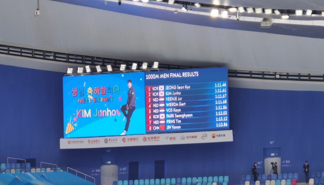 “冰丝带”为韩国参赛选手庆祝生日