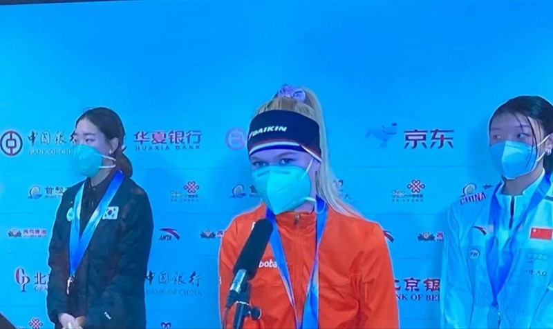 疫情防控是本次速度滑冰中国公开赛的重中之重,也是大家关注的焦点。夺得了女子3000米冠军的荷兰选手克莱伊维尔德通过视频云采访对国家速滑馆赛事防疫工作给予肯定,称这次比赛防疫工作组织得非常好,对运动员的保护也很好。“运动员一旦被感染,需要被隔离很长时间。这次赛事有这么好的措施,对运动员保护状态是一件有利的事情。”她说道。