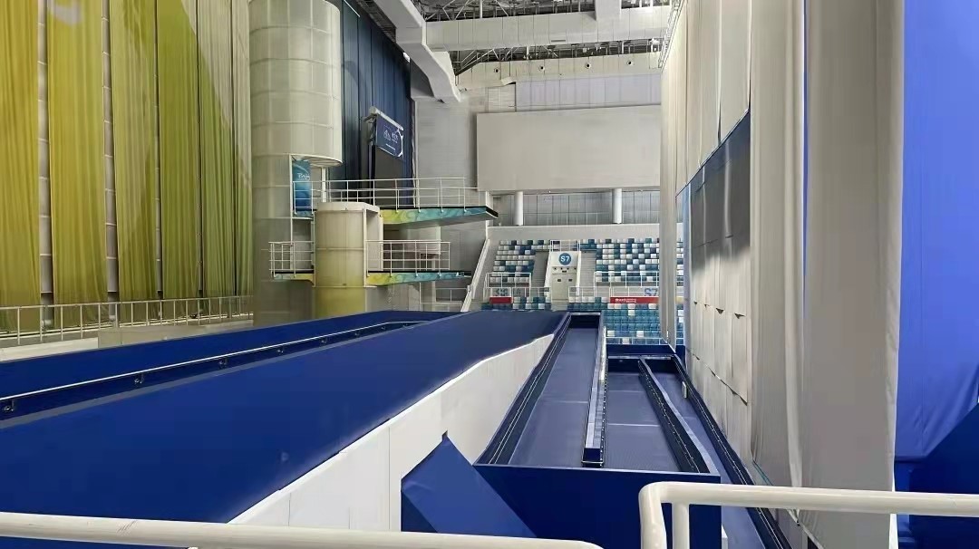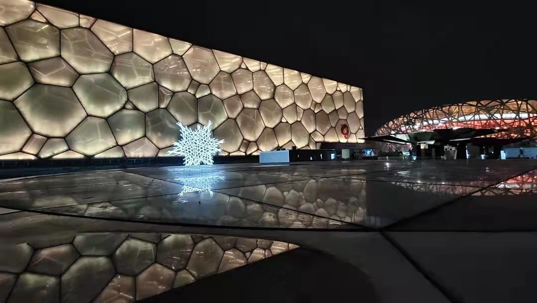 在国家游泳中心,这块北京2008年奥运会时的游泳、跳水和花样游泳比赛场地,蔚蓝色的泳池被四块晶莹剔透的冰壶赛道代替,成为北京冬奥会、冬残奥会冰壶和轮椅冰壶比赛场馆。