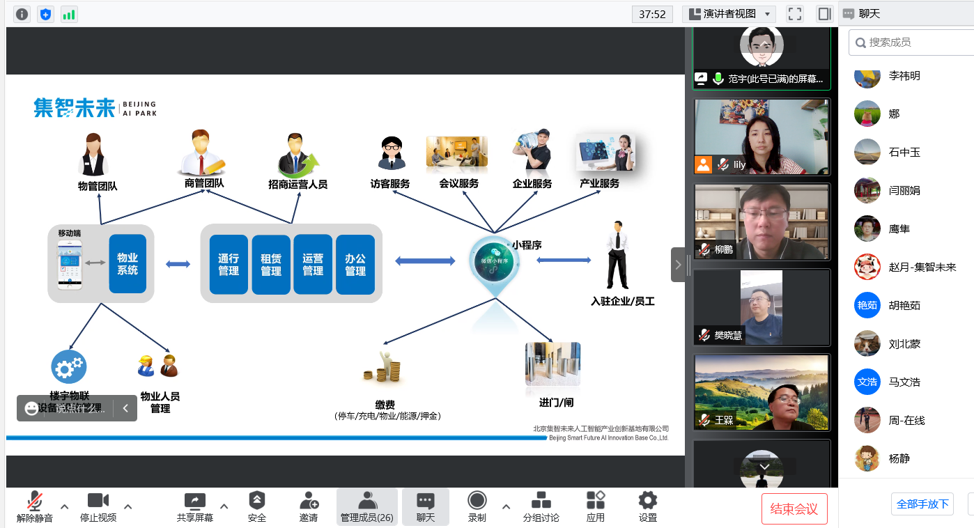 第二场为智慧化平台二期使用培训,随着园区“集小智”二期开发进度,邀请开发团队老师通过线上操作演示,对照平台各功能讲解、操作,与各部门沟通使用问题,协助全员深入了解智慧化平台新增功能在日常工作中如何协同办公。