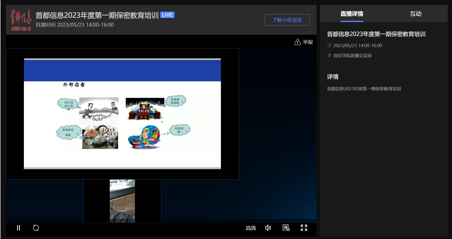 5月23日下午,保密办公室联合首信学院,通过首信学院云直播会议室,面向全体员工开展了公司2023年度第一期保密教育培训,共900余人参加了培训。