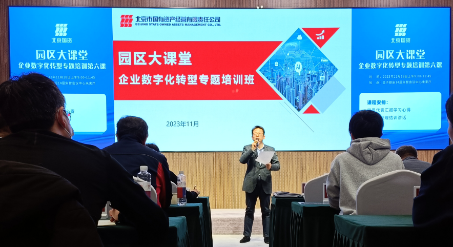 11月18日,由国资公司人力资源部主办、集智未来公司承办的园区大课堂数字化转型专题培训班举办第六次课程。公司党委副书记、总经理张杰,党委副书记闫中,总会计师王守业,人力资源总监刘莉,各二级企业中高层管理人员及国资公司总部部分中层及骨干员工共72人参训。