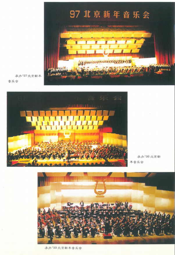 为了打造自主音乐会品牌,北演公司在上级单位的支持下,于1996年底在人民大会堂创办第一届“北京新年音乐会”,于第三届“北京新年音乐会”首次邀请俄罗斯国家交响乐团,逐步形成了“名团、名家、名曲”和“国际水准、中国气派、北京特色、节日气氛”的品牌理念,以固定的演出时间、演出场地和演出形式形成了独一无二的品牌特征,将“北京新年音乐会”打造成为北京市标志性的音乐盛事和文化名片。