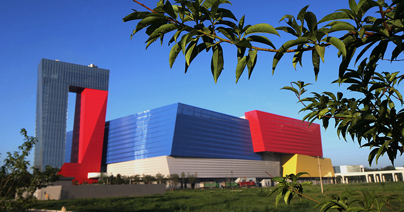 北京城市副中心(通州)循环经济产业园项目颜色鲜艳的主厂房外观