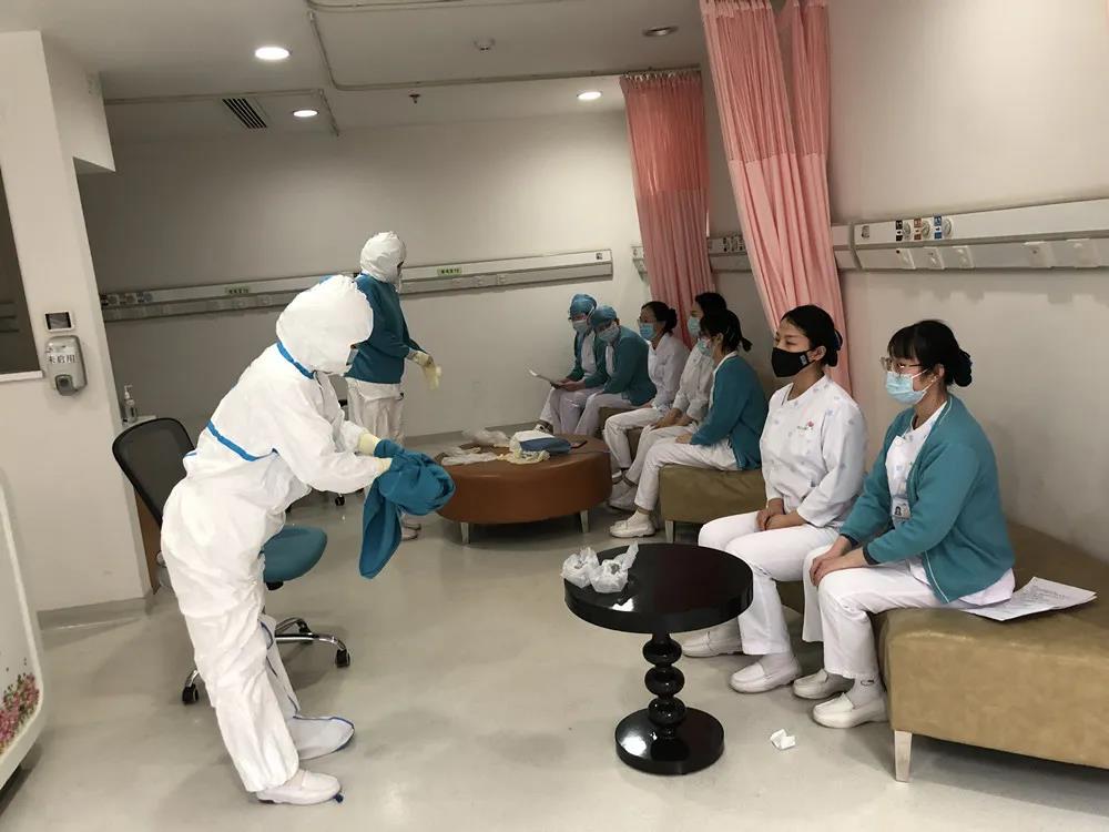 为了做好必要的防护保障,王春莲组织儿科门急诊率先在院内发起了三级防护服的穿戴训练,亲自录制了小视频,为大家仔细讲授和展示每个动作,并邀请院感科资深的医护人员、为大家进行分组教学和一对一的考核,确保团队防疫培训到位。