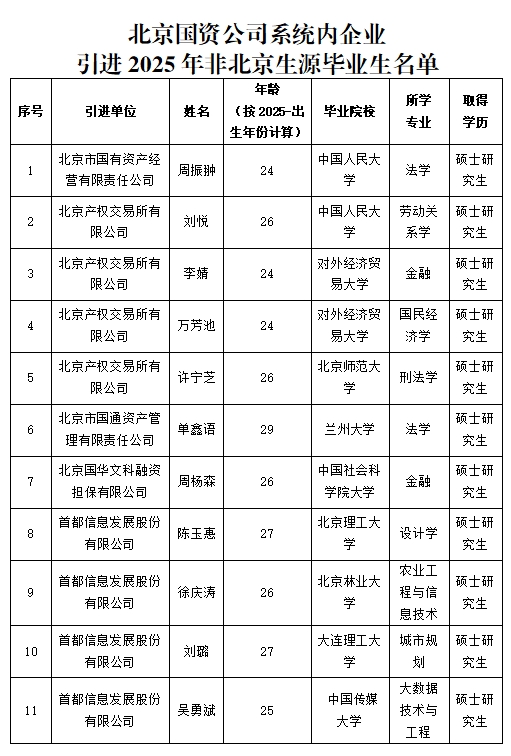 为加强毕业生接收工作社会监督,现将我公司系统内企业引进2025年非北京生源毕业生予以公示。
