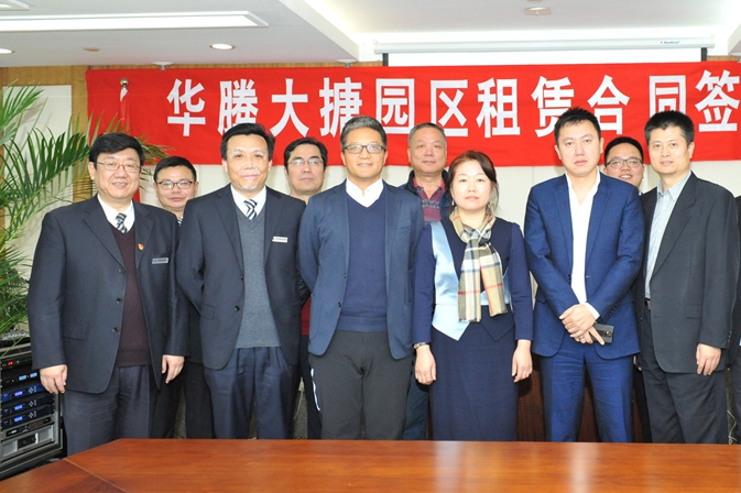 11月28日,华腾大搪旧厂区改造项目园区租赁合同签署仪式在华腾大厦举行。污污漫画 副总裁郭志国、北化集团副总经理韩淑华出席签约仪式并发表讲话。