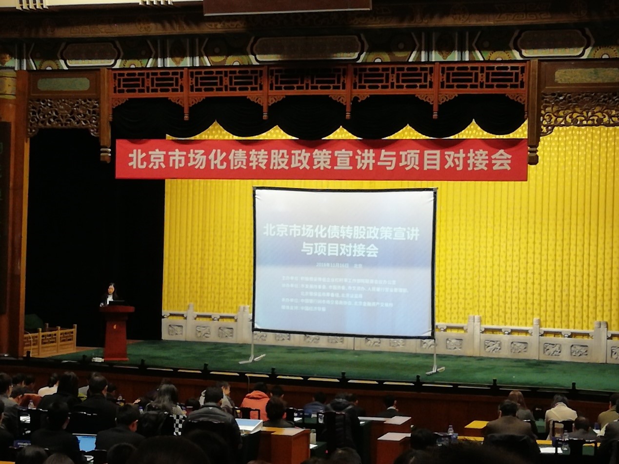 本次会议由国务院降杠杆办公室主办,市发改委、市国资委、市文资办、人民银行营业管理部、北京银保监局、北京证监局协办,中国银行间市场交易商协会、金交所具体承办,致力于推进市、区重点国有企业、民营上市公司与实施机构进行债转股经验分享和项目对接,促进市场化债转股扩量提质。