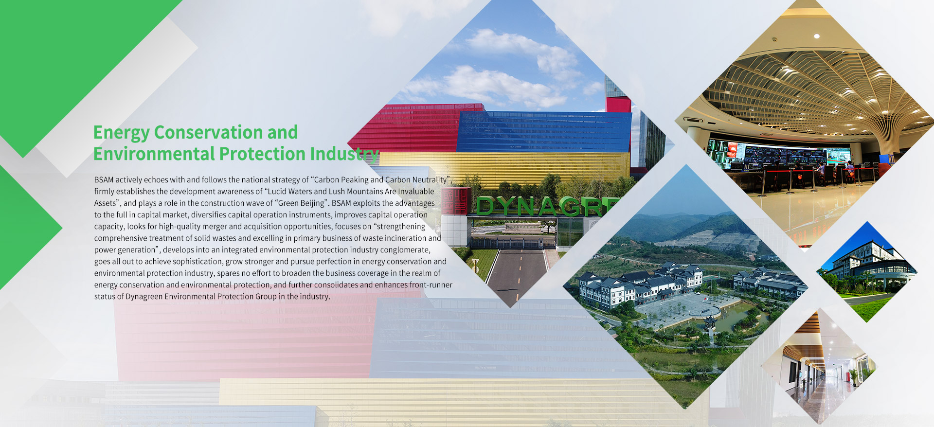 Established in 2000, Dynagreen Environmental Protection Group Co., Ltd (hereinafter referred to as “Dynagreen”) is a state-owned enterprise group specialized in circular economy and renewable energy industry. Dynagreen is the first A+H share listed company in Chinese waste incineration power generation industry. Dynagreen is the first to introduce internationally-advanced waste incineration technology for domestic transformation, upgrading and redevelopment in China. Up to now, Dynagreen has obtained more than 70 patents. By the end of 2023, Dynagreen had possessed more than 70 BOT and PPP franchise contracts for solid waste treatment in more than 20 provinces and autonomous regions, such as Beijing, Jiangsu, Hubei and Guangdong. In the whole industry, Dynagreen ranks among the best with total waste treatment scale of 78,000 tons per day and 26 million tons per year.Established in 2000, Dynagreen Environmental Protection Group Co., Ltd (hereinafter referred to as “Dynagreen”) is a state-owned enterprise group specialized in circular economy and renewable energy industry. Dynagreen is the first A+H share listed company in Chinese waste incineration power generation industry. Dynagreen is the first to introduce internationally-advanced waste incineration technology for domestic transformation, upgrading and redevelopment in China. Up to now, Dynagreen has obtained more than 70 patents. By the end of 2023, Dynagreen had possessed more than 70 BOT and PPP franchise contracts for solid waste treatment in more than 20 provinces and autonomous regions, such as Beijing, Jiangsu, Hubei and Guangdong. In the whole industry, Dynagreen ranks among the best with total waste treatment scale of 78,000 tons per day and 26 million tons per year.