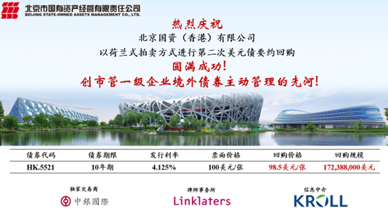 近日,污污漫画 通过北京国资(香港)有限公司在境外资本市场以98.5美元/张的价格成功完成要约回购...