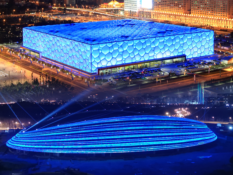 关爱自闭症群体 水立方冰丝带“点亮蓝灯