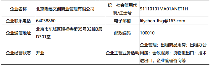 北京隆福文创商业管理有限公司工商信息