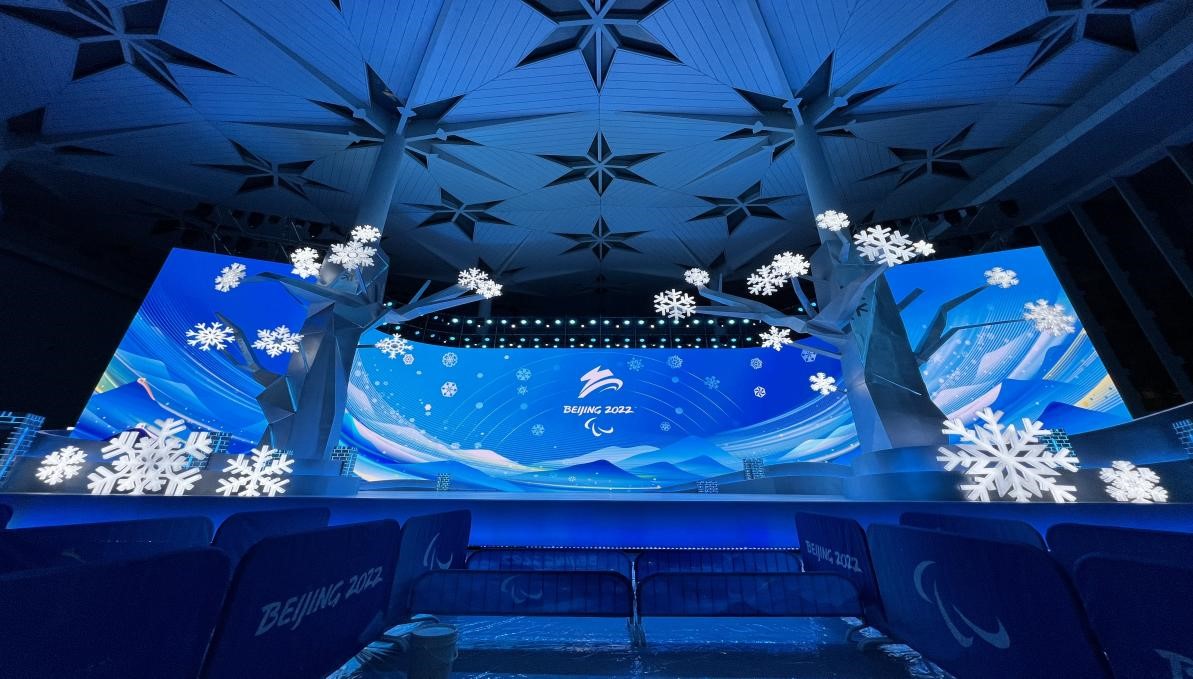 2022年1月15日,延庆冬残奥颁奖广场进行了第一次全流程、全要素演练。这不仅标志着延庆冬残奥颁奖广场已具备赛时运行条件,也意味着北奥集团正式向北京冬奥组委交付延庆冬残奥颁奖广场舞台,圆满完成北京、延庆、张家口三大赛区颁奖广场舞台的策划、设计与搭建工作。
