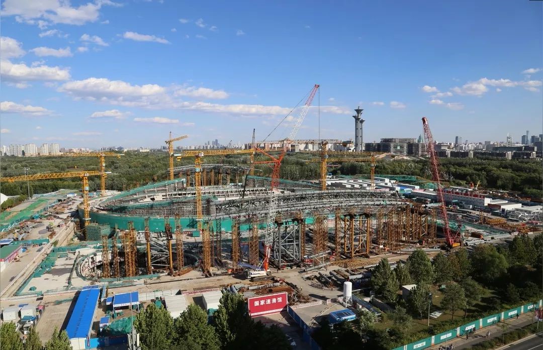 9月30日,“冰丝带”完成混凝土主体结构,实现拔地而起。