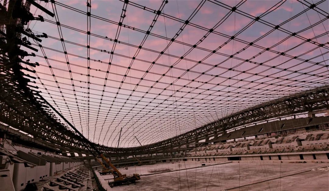 3月,国家速滑馆屋顶索网“天幕编织”完成。