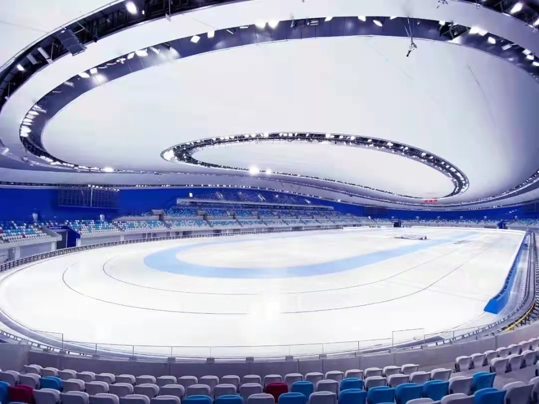 5月,国家速滑馆开展首次全冰面制冰,规模约1.2万平方米的场馆全冰面成功亮相。