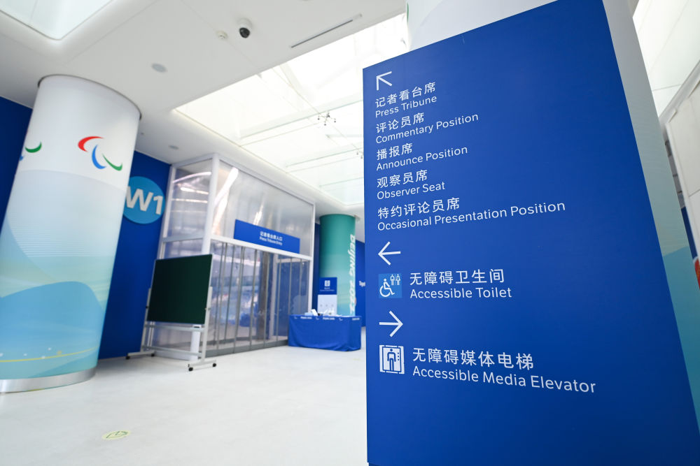 这是在国家游泳中心“冰立方”内拍摄的一处指示标牌。新华社记者张博文摄